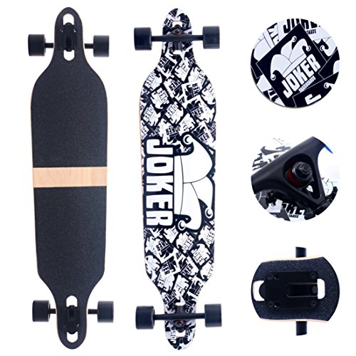 -. Feature : 42"*9.5" full maple deck with unique shape, gives 9.6-inches of leverage into every turn, while also eliminating wheel bite / 70mm wheels 70% rebound, 83A hardness, ideal for downhill carving / ABEC-9 special bearing, provides maximum smooth rolling / Truck Material: 356-T6 aluminum alloy base plate and hanger, / Includes limited one-year manufacturer's warranty