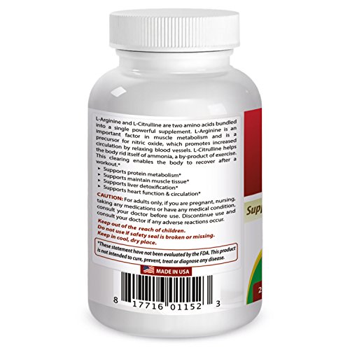L-Arginine and L-Citrulline are two amino acids bundled into a single powerful supplement. L-Arginine is an important factor in muscle metabolism and is a precursor for nitric oxide, which promotes increased circulation by relaxing blood vessels. L-Citrulline helps the body rid itself of ammonia, a by-product of exercise. This clearing enables the body to recover after a workout.Feature