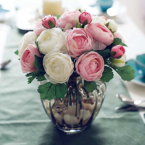 IFASHION 10pcs of Small Tea Rose Bouquet Simulated Camellia Bride Holding Flowers Wedding Artificial Flowers (Pink and white)