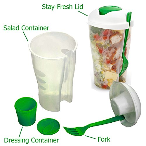 Fresh Salad Container Serving Cup Shaker with Dressing Container Fork Food Storage Bonus Recipes, Use This Bowl for Picnic, Lunch to Go, Made with High Quality Plastic Bottle - Eat Healthy -(Set of 2)