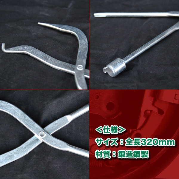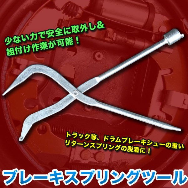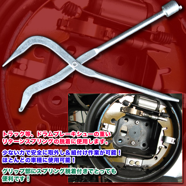 トラック等、ドラムブレーキシューの重いリターンスプリングの脱着に使用します。