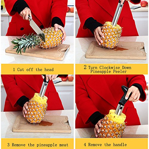 PERFECT PINEAPPLE SLICER - Stainless Steel Pineapple Slicer has a reasonable size design and sharp blade, reducing waste and making it easier to peel,Reuse the leftover pineapple shell as a bowl.