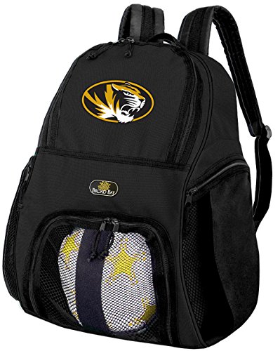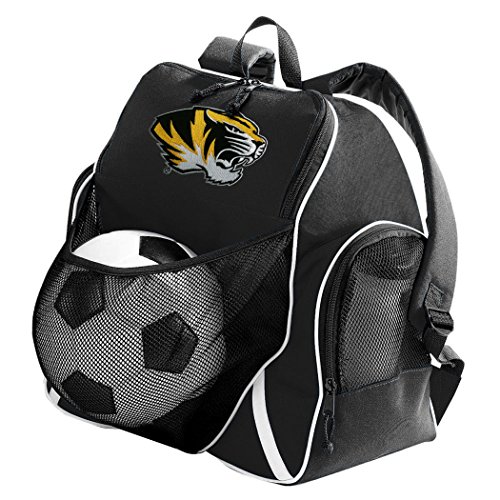 Studio : Broad Bay Publisher : Broad Bay Binding : Misc. Product Description This well made college logo Mizzou ball backpack is the perfect solution for soccer or volleyball practice. Made of heavy duty 600D polyester with soft backing, the mesh ball pouch allows you to quickly and easily secure your ball and keep it separate from the main compartment. The main compartment is spacious with plenty of room for your shin guards, cleats, and a change of clothes. Two zippered side compartments with mesh panels allow you to keep your water bottle in one and your keys and cell phone in the other. Backpack features adjustable padded shoulder straps, hand strap and dual zipper pulls on both the main compartment and the ball compartment. 16.5in x 16.5in x 9in 0