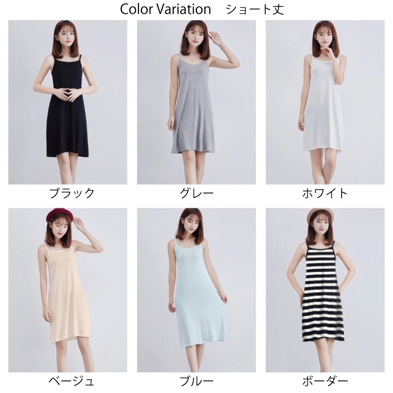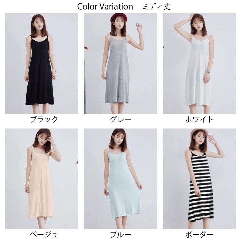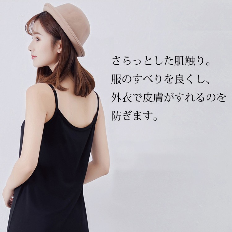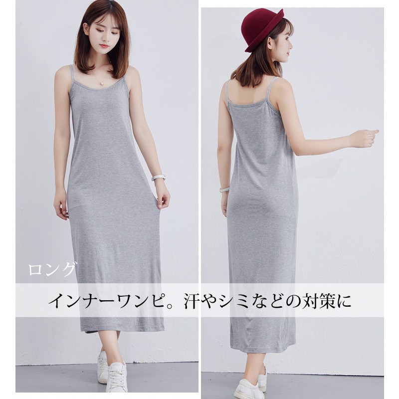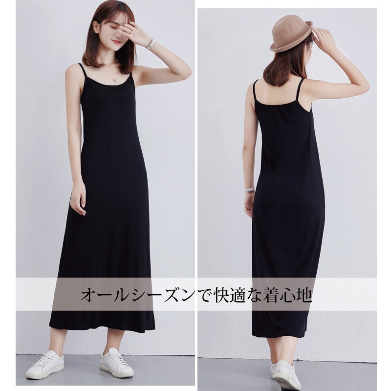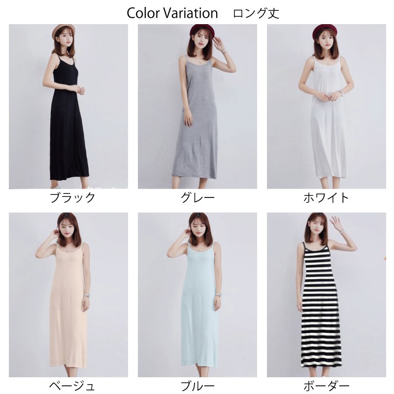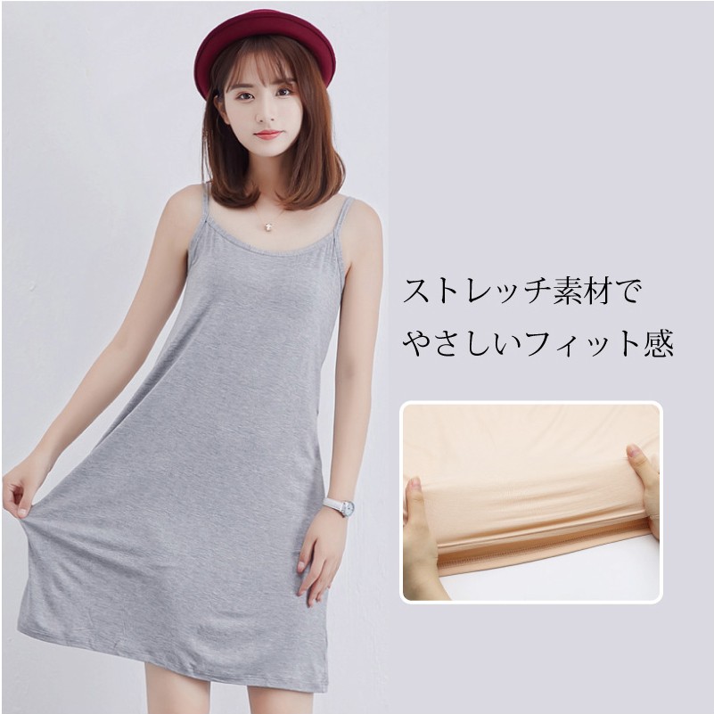 | 商品説明 | 3タイプから選べるキャミワンピ。 シンプルだから肌着として、透け防止として 膝丈からロング丈のワンピに対応できます。 |