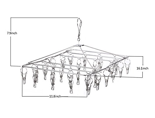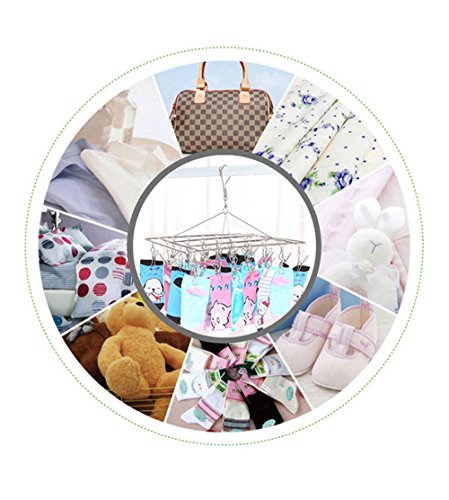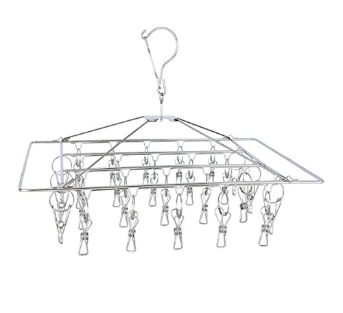 Aweoods Clip and Drip Laundry Hanger with Set of 26 Overstriking Stainless Steel Clothespins Round for Drying Clothing Towels/Diapers/ Underwear/ Socks