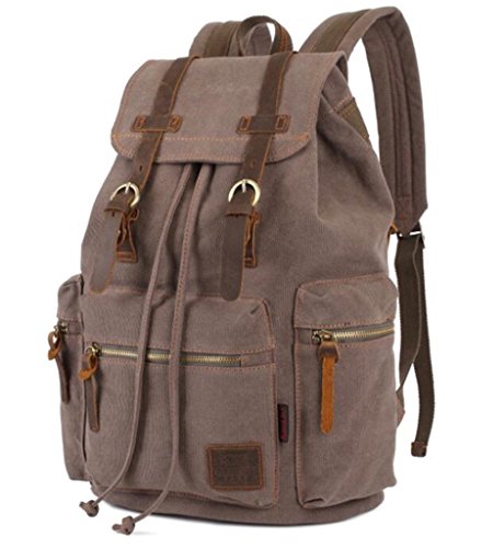 Bagtopia Vintage Men Casual Canvas Leather Backpack Rucksack Satchel Hiking Bag