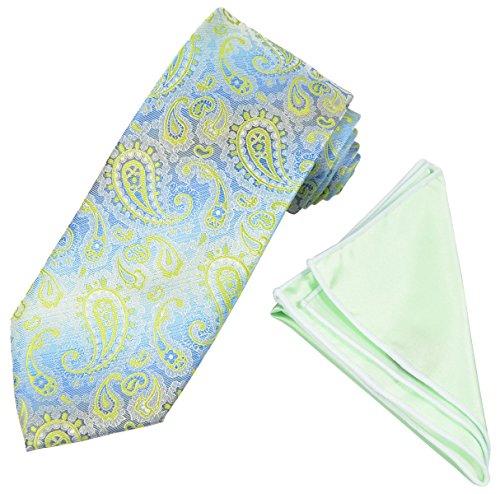 (Paul Malone)/Accessories/Ties/DIRECT FROM USA/Light Blue Paisley Men's Tie and Contrast Pocket Square Set