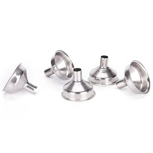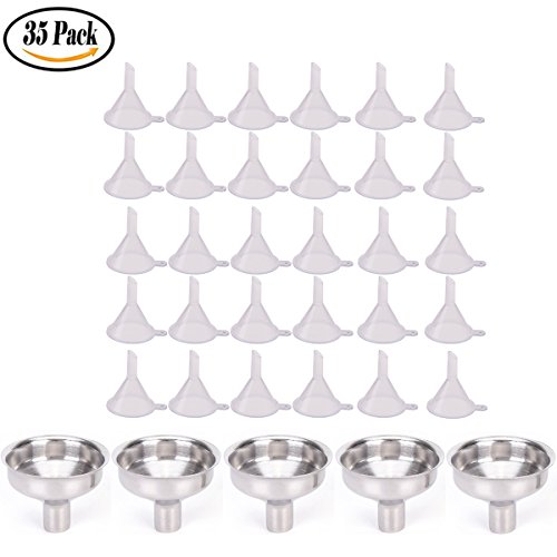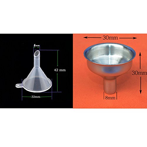 Buytra 5 Pack Stainless Steel Mini Funnels and 30 Pack Clear Plastic Funnels for Essential Oil Bottles, Perfume, Flask, Sand Art, Lab Chemical Liquids