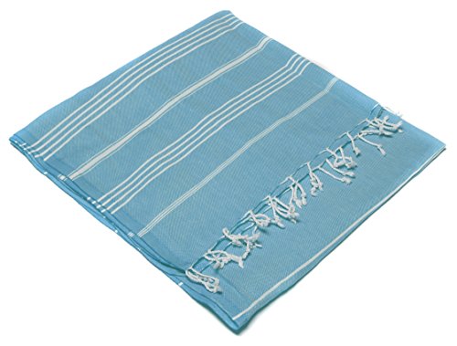 Turkish Emporium Striped 100% Organic Cotton Hand Loomed Bath Towel Hammam Fouta Pestemal Peshtemal (Turquoise)
