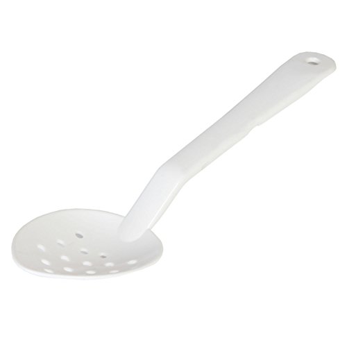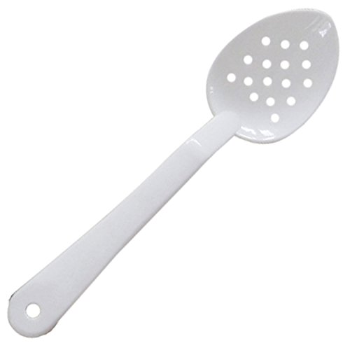 Studio : Excellante Publisher : Excellante Binding : Misc. Product Description Excellante 11" serving spoon, perforated, polycarbonate, white. Made of break resistant polycarbonate material. Serving spoons resist heat up to 212° Degree F (100° Degree C). Can be used to meaty sauces, casseroles, rice or desserts. One piece molding process. NSF (National Sanitary Foundation) certified standards and are safe enough to use by any people. Handle size 6" x 1.25" x 0.375". Available in 6 colors: Beige, Black, Clear, Green, Red, White. 0