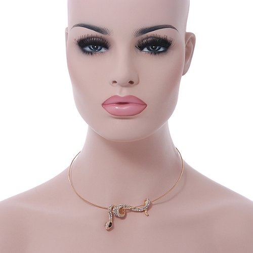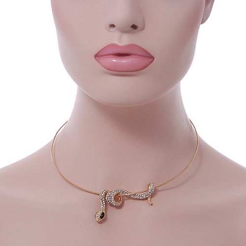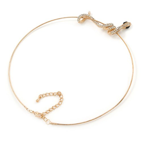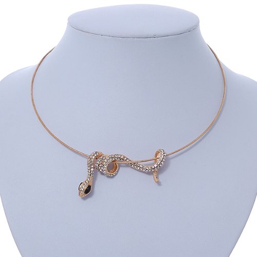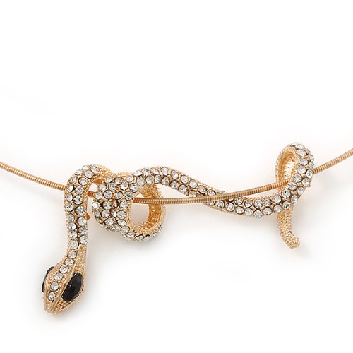 Have all your friends asking "Is it real"? Wear this bold, statement jewellery piece with pride. Featuring a coiled snake pendant, crafted in gold plated metal and accented with clear crystals for a sparkling look. The snake measures about 55mm in width and slides on the 40cm wire cord, with an additional 7cm extender. Fastens with a lobster claw clasp.Feature