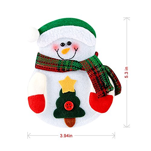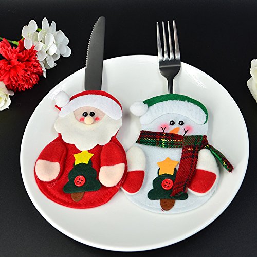 Studio : Tripop Publisher : Tripop Product Description Made from quality non-woven fabric, this is a set of 6 Christmas silverware holders (silverware pockets) with totally 3 types (Snowman, Santa Clause and elk) and 2 pcs for each. These cute cutlery silverware holders are intended to be used to hold your knives, forks and spoons and to build up a creative decoration for the coming Christmas Day, adding a fun and festive atmosphere for your family. Product Specification: Color: See the pictures left above for more Materials: Non-woven fabric Size: About 3.94x0.39x5.5 in Application: Excellent and cute Christmas decoration on your dinner table Packing Information: 2 x Snowman silverware holders 2 x Santa Clause silverware holders 2 x Elk Cutlery Suit Pockets