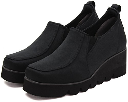 -. Title : (らくちん) rakuchin 足長美脚 3E 厚底 ウェッジソール 撥水 スリッポン スニーカー 黒