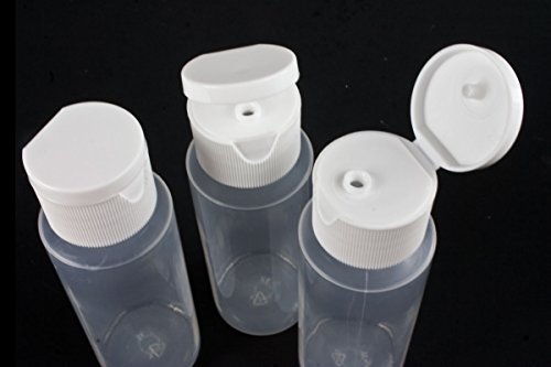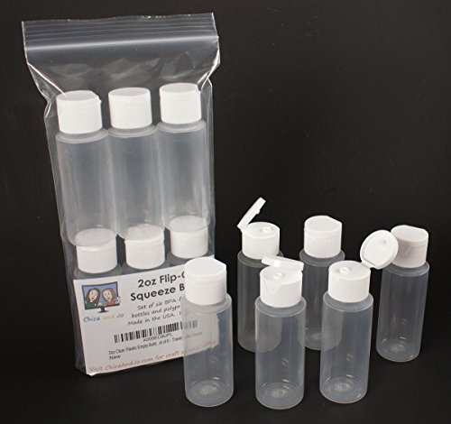 - Feature : Set of 6 empty plastic bottles with screw-on, flip-cap tops. / Polypropylene bottles and caps are BPA-free and FDA approved. / Convenient flip cap makes it easy to dispense. Bottle is rigid enough to stand straight, but flexible enough to squeeze easily. / Use for storing liquids for travel or around the house. Comes in a convenient zip-top bag. / Clear plastic bottle shows true color of contents. Chica and Jo brand.