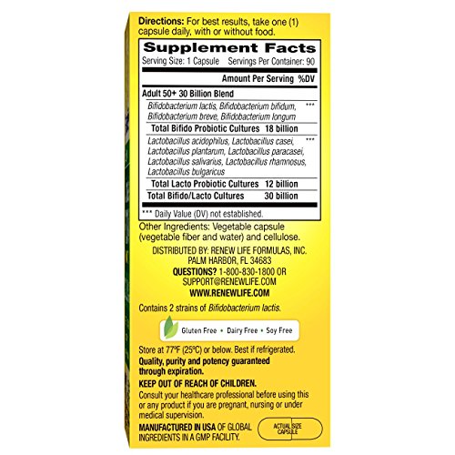 -. Title : Renew Life Adult 50+ Probiotic, Ultimate Flora, 30 Billion, 90 Capsules