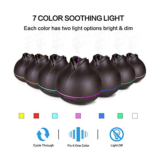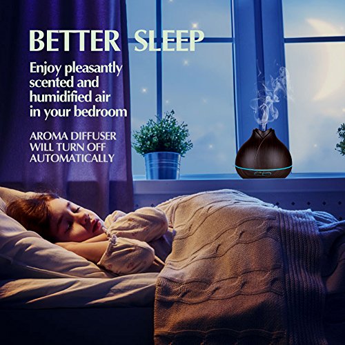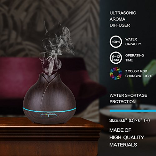 400ML LARGE CAPACITY & WATERLESS AUTO-OFF: The essential oil diffuser features a 400ml (13.6 ounces) water tank, providing up to 12 hours mist time. Automatically shut off when there is no sufficient water. Comes with one year money back WARRANTY.