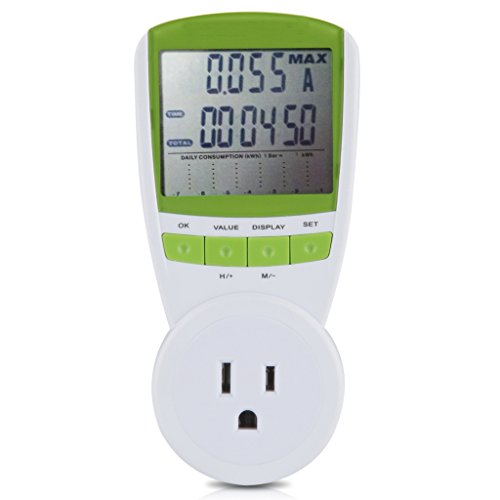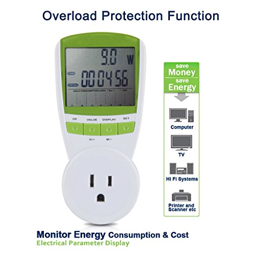- -Measures various parameters: power (W), energy (kWh), volts, amps, hertz, power factor and maximum power (W), time, days - kWh is vital as this is what your electricity bills are based on!