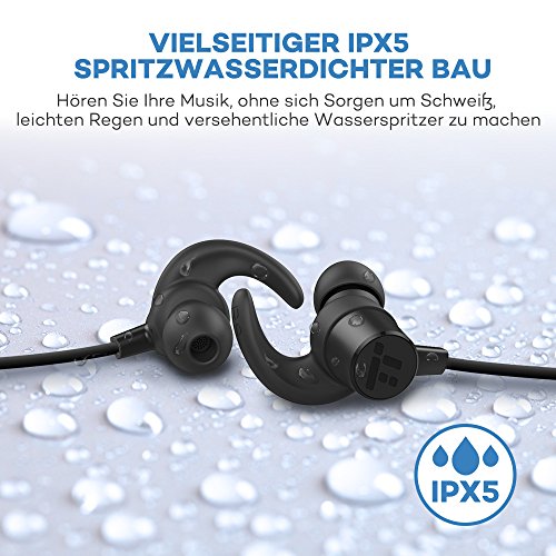 VERBESSERTER KOMFORT & TRAGBARKEIT: Geniessen Sie den Tragekomfort mit austauschbaren, weichen Ohrhorern und stabilen Ohrbugeln; fur ein besseres Trageerlebnis sorgt der IPX5 Wasserschutz.