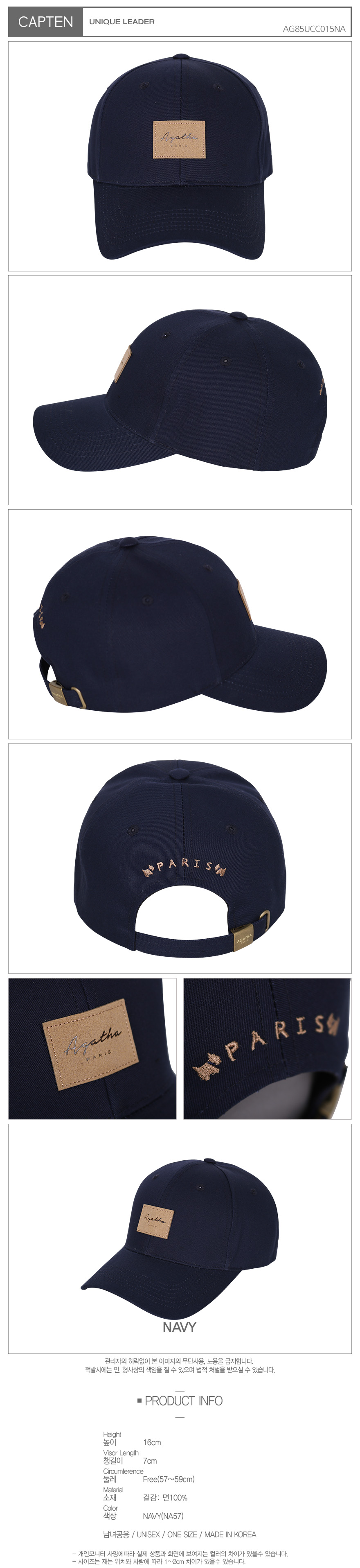 사이즈높이: 16cm, 챙길이: 7cm, 둘레: Free(57~59cm)