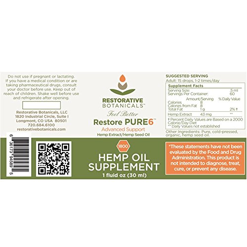 -. Title : Restore PURE6 h.e.m.p Oil Extract 1800 mg Advanced Formula 1 ounce (30ml) Restorative Botanicals - supports functional calming for stress relief, relaxation, healthy sleep patterns, and achy muscles