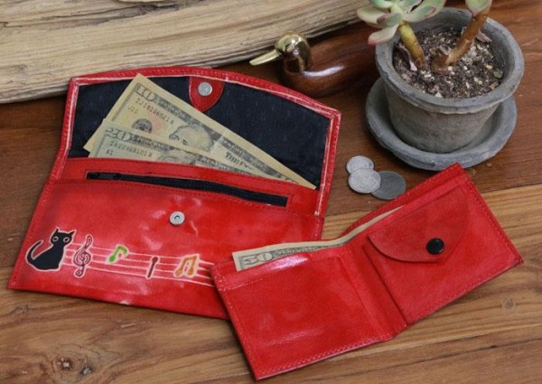 山羊革に型押しで模様をデザインして、カラフルにペイントしたお財布です。大きなお財布は普段使いに、小さいお財布は領収書やレシート入れにおすすめです。小さいお財布は表裏が同じデザインになっています。 |