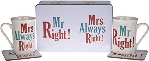 His and Hers Coffee Mug Cup Set - Two 10 OZ. Ceramic Mugs-Two Coasters in A Tin Gift Box (#3)