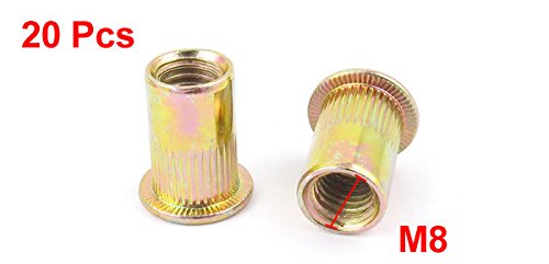 uxcell 20pcs Flat Head Metric Steel M8 Blind Insert Rivet Nut Flat Head