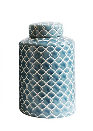 Creative Co-op Small Hand-Painted Ginger Jar with Fret Pattern