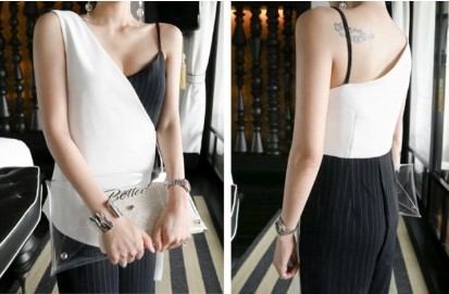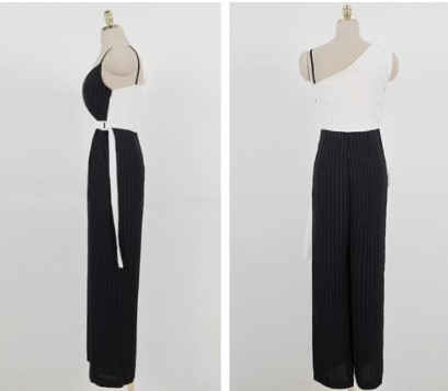 アシンメトリーのデザインがオシャレな、きれいめオールインワンです。