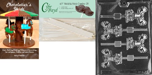 Cybrtrayd 45St25Bk-A038 'Moose Lolly' Animal Chocolate Candy Mold with 25 4.5-Inch Lollipop Sticks and Chocolatier's Guide