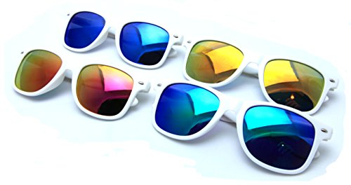 -. Title : VW Eyewear - 4 Pairs White Classic Sunglasses Revo Color mirror lens Large Horn Rimmed