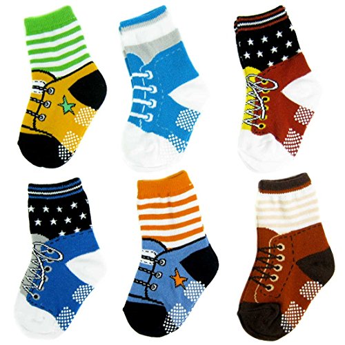 Studio : kilofly Publisher : kilofly Binding : Baby Product Product Description KF Baby Non-Skid Baby Boy Shoe Socks Gift Set is an ideal gift for a new arrival in the family. These 6 pairs of non-skid socks are made of cotton-rich fabric that is soft and comfortable on the little feet of your baby. They are all in fun, bright colors with adorable shoes design and non-skid soles for better traction.