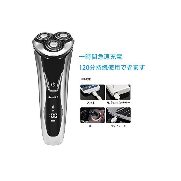 원본상품명: SweetLF シェバ メンズ 電カミソリ ひげそり トリマ付 3枚刃 深剃り USB充電 IPX7防水 お風呂剃り可 スマトロック付