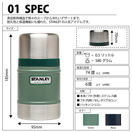 STANLEY(스타《레》) 클래식 진공 후드 밥통 0.5L 네이비 00811-012 (일본 정규품)