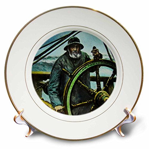 3D Rose Victorian Sea Captain At the Ships Wheel Vintage Old Salty Porcelain Plate, 8"