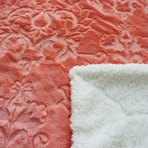 BOON Embroidery Batik Sherpa Throw Blanket, 50" x 60", Spice Coral