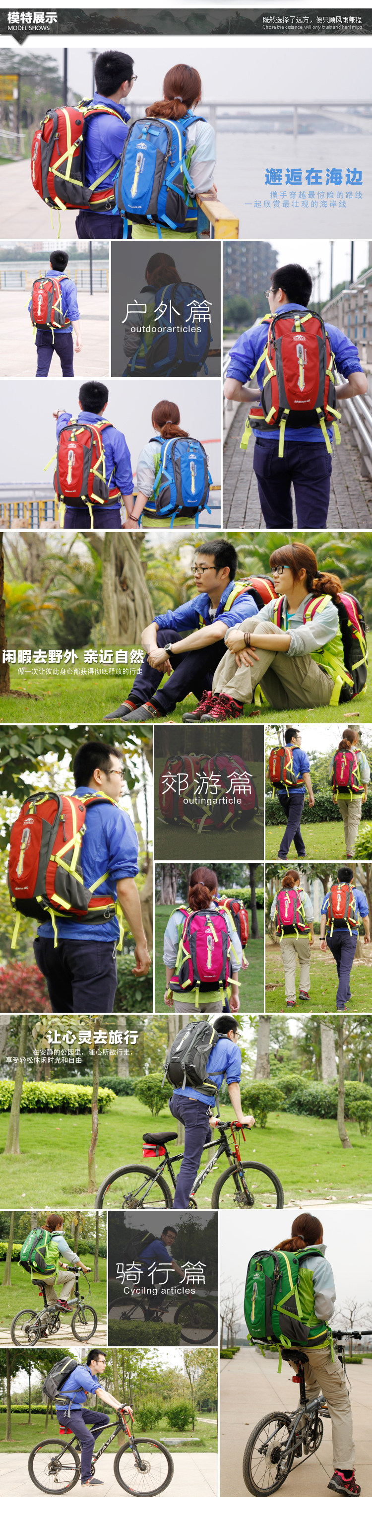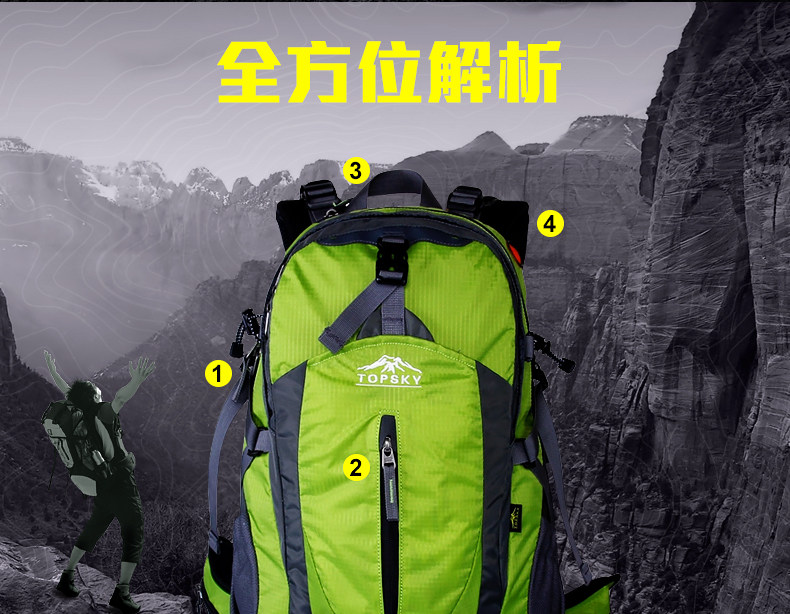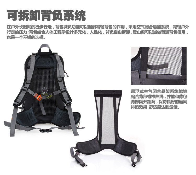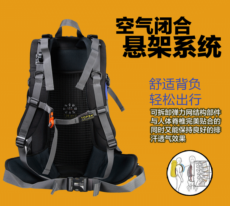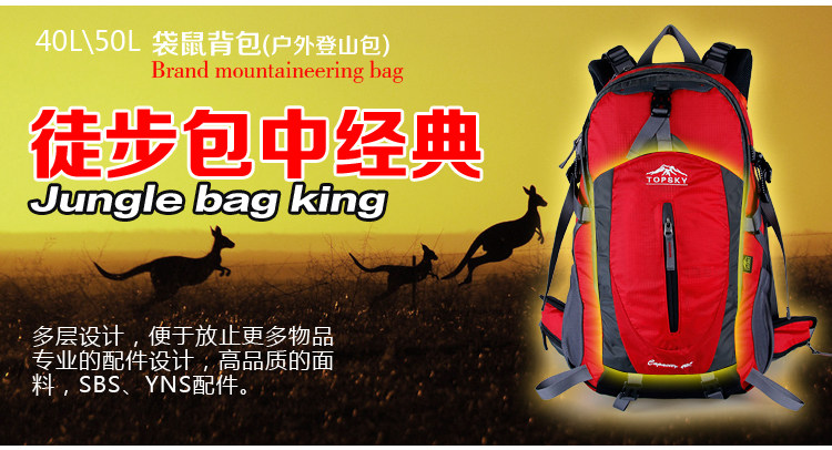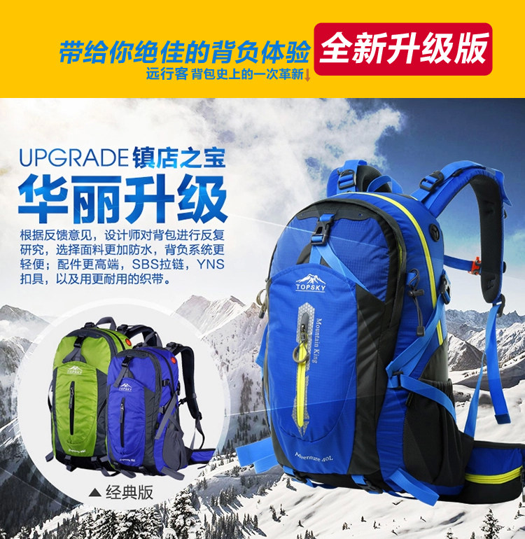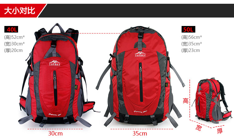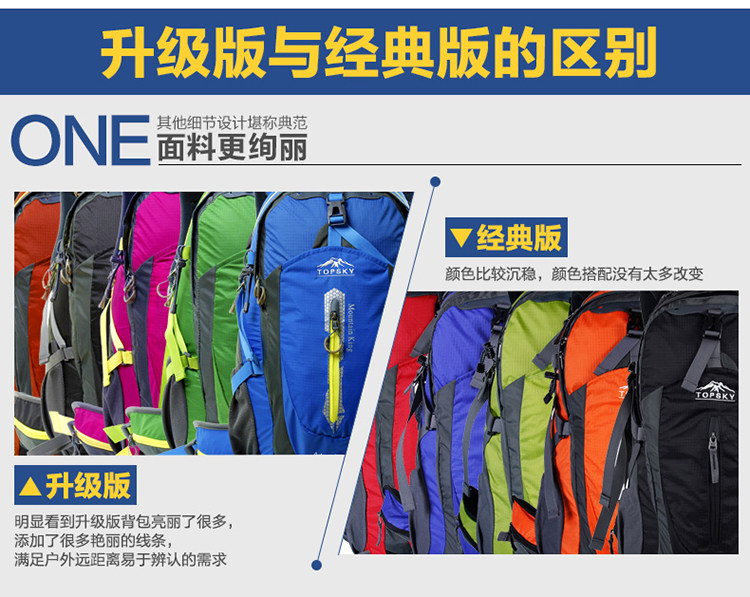 Product parameters: Time to market:2014summer Aremallsthe same paragraph: Yes Item No: T33601 Capacity: 36L (including) -55L (including) Time to market:2014summer Material:Nylon Pricetag: 399 Carrying system: Resin net made in China To apply a gender: unisex Color Classification: blackfruitredgreenblueorange Applicablescene: Professional mountaineering Carrying systemstructure:within theframepackage Capacity: 40L 50 升 Brand: Topsky / traveloff Dimensions: 40L 50L Whetherequipped withrain cover: Yes Is there akettlereservedwarehouse: Yes ProductSeries:Mountaineering bag