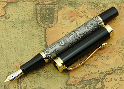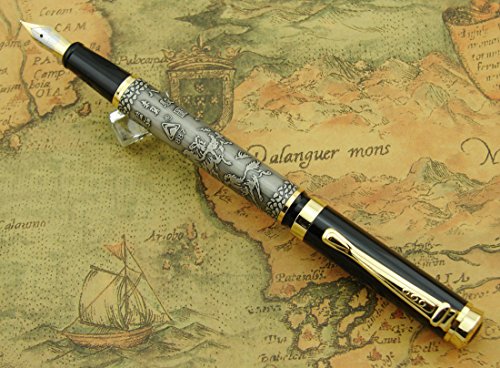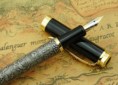 -. Title : Lanxivi® Dikawen 887 Fountain Pen Horse Engravementpen Pouch Gift Silver Color