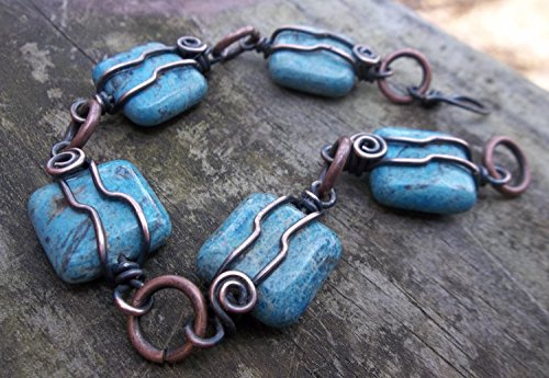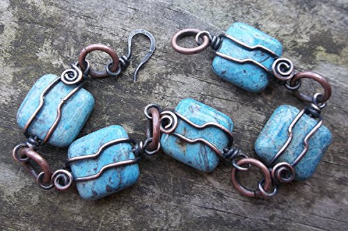 -. Title : 1 Upcycled Copper Link Bracelet with Denim Jasper
