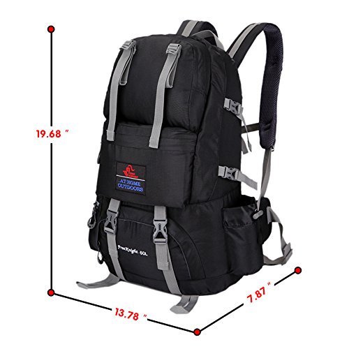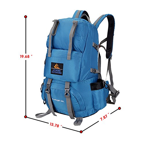 -. Feature : DURABLE- The travel backpack is made of high quality water resistant and tear resistant nylon,provide strengthen and long-lasting performance with light weight. / ADJUSTABLE STRAPS- For tying up your pack or hanging sleeping bag, mat, hammock, tripod, and other gears; Size 19.68''H*13.78''W7.87''D (50 Liter);Weight 0.97kg / COMFORTABLE- Air cushion shoulder straps help relieve your shoulder stress.Adjustable shoulder length,free to adjust to ideal length.3D honeycomb breathable mesh and high elasticity noodles back cushion,relax the back pressure and impact force,promote the circulation of air,breathable and comfortable. / MULTIPLE POCKETS- 3 front pocket,2 side pocket,1 main compartment with a sleeve for your items separate and organized.One side mesh pockets for water bottles or umbrella,another for your smartphone or keys. / PERFECT BEGINNER OR QUICK TRIP PACK- Perfect for both daily and outdoor activities.Use it as a carry on for your excess baggage,perfect for day trips,vacation, travel,day hikes,school,camping and shopping.