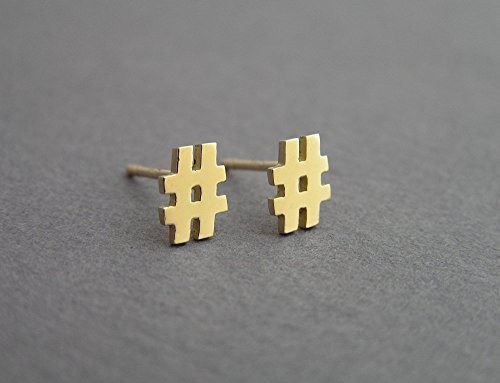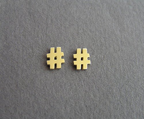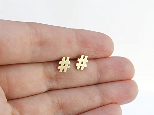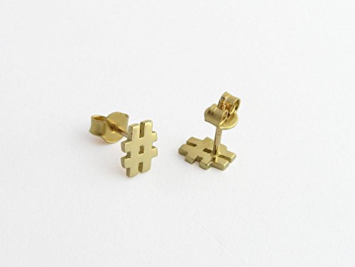 -. Title : 14k Gold Hashtag Post Earrings Solid Gold Studs Hash Symbol