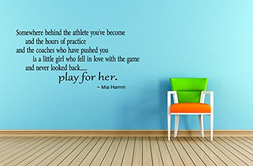 Design with Vinyl SOS 1004 2 A Somewhere Behind the Athlete You've Become a Little Girl Who Fell in Love with the Game & Never Looked Back…Play for Her. -Mia Hamm Wall Decal Quote, 20" x 40", Black
