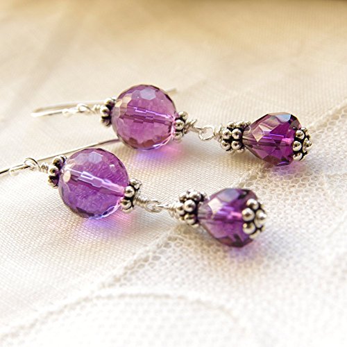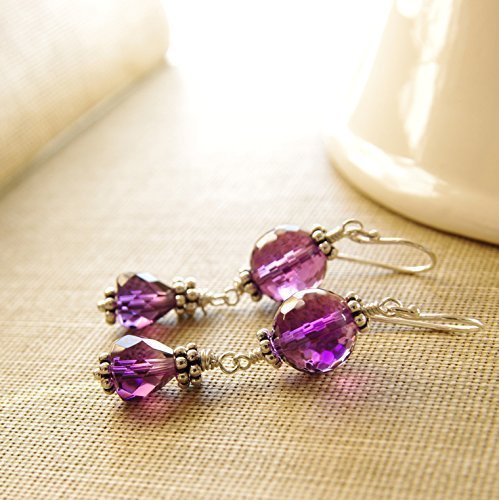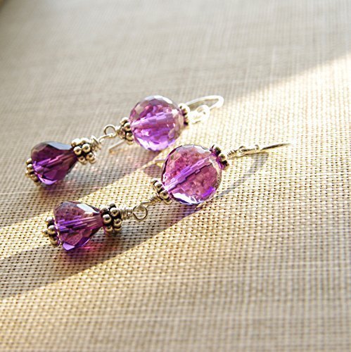-. Brand : JEWELRY DESIGN BY SS -. Color : Purple -. Department : Women -. ProductGroup : Guild Product -. ProductTypeName : GUILD_JEWELRY -. Title : Amethyst Earrings Purple Faceted Gemstone Jewelry Sterling Silver Drop Stone Dangle Bali Bead January Birthday Birthstone 33rd Anniversary Artisan Handmade