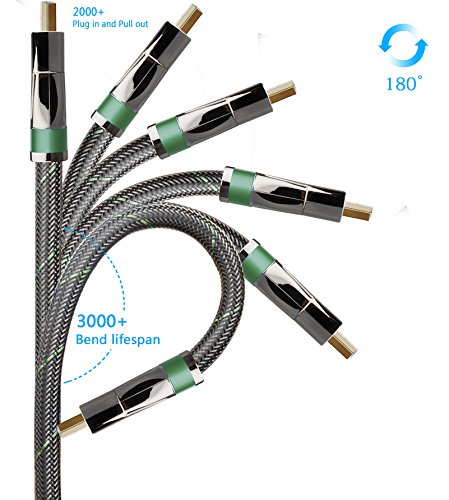 High-Speed HDMI Cable features 24K gold-plated, 99.996% and high purity oxygen-free copper, corrosion-resistant connectors that deliver optimal signal transfer with lower distortion at the point of contact. Ultra-high speed lossless audio and video transmission,This dedication to the digital signal provides sound and picture quality that is truer to the original. high quality PVC, Tough braided exterior outer layer and shielding, purity of the digital signal and longer service life.