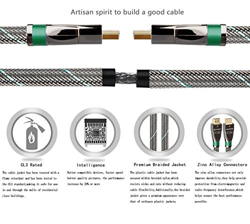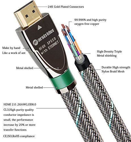 FARSTRIDER HDMI cable 2.0 Version Super High Quality with 3D Technology and Audio return(ARC)/CAT-2 HDMI Cable(Full 1080p/2160p approved),Full Ultra HD 4k support - 2160p (4096 X 2160 pixels),extended colour spaces such as xv Colour and Deep Colour.Supports 720p, 1080i,1080p and 2160p also Supports 4K x 2K Video and more color spare,Supports 54-Bit Deep Color for a Crispy Image.Supports True HD Dolby 7.1 and DTS-HD Master Audio,Support for all television with 1000Hz rates and above.