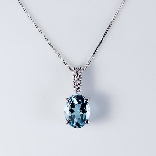 -. Feature : 枠:K18ホワイトゴールド(ロジウムメッキ) / チェーン:K18ホワイトゴールドベネチアンスライド 約45cm / チェーン取り外し可 フリーアジャスター管含む / アクアマリン:1石1.0ct ダイヤ3石合計0.07ct / 総重量:約2.4g 最大幅:約15mm 鑑別書付き