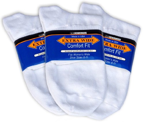 -. Binding : Misc. -. Department : womens -. Feature : 20% Wider in the Foot and Ankle / Comfort Fit and Non-Constricting / 91% Cotton, 7% Nylon and 2% Spandex / 3 Pair of Quarter Socks, Size 8-11 Wide / Made in the USA -. Label : Extra Wide Sock Company -. Manufacturer : Extra Wide Sock Company -. PackageQuantity : 3 -. ProductGroup : Sports -. ProductTypeName : SPORTING_GOODS -. Publisher : Extra Wide Sock Company -. Size : Extra Wide -. Studio : Extra Wide Sock Company -. Title : Extra Wide Athletic Quarter Socks for Women (3 Pack)