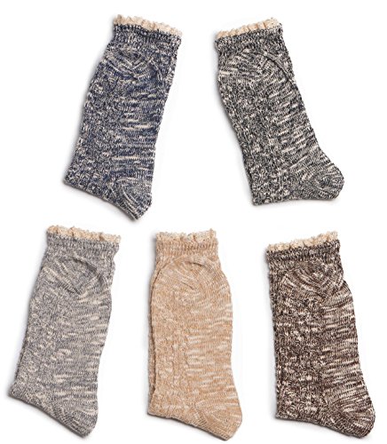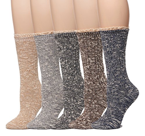 -. Binding : Apparel -. Brand : Leotruny -. Department : womens -. Feature : Women shoe size:5-10(sock size 6-12) / Made of soft, stretchy and comfortable cotton blend, lightweight,wearable and sweat-wicking / Suitable to wear in cold weather and keep your feet warm this winter / Unique vintage and trendy style design, Perfect gift for women in your life / 5pairs(10socks) assorted in Leotruny pack -. IsAdultProduct : 0 -. PackageQuantity : 5 -. ProductGroup : Apparel -. ProductTypeName : SOCKSHOSIERY -. Size : One Size -. Title : Leotruny 5-Pack Women's Lace Vintage Knit Dress Crew Boots Socks