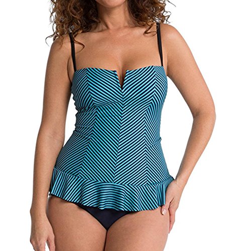 SPANX Ruffle Swim Dress (2691) sz 12 Navy Splash Thin Stripe