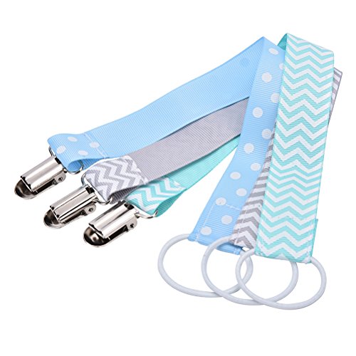 -. Feature : Keep your baby from losing their pacifier again. Clips easily attach to baby¡¯s clothing or baby bibs and stay in place,and the other side can attach pacifier,teething toys etc / Stylish unisex patterns. Modern and neutral colors for both baby boys and girls / There are plastic pads inside the metal clips,which are strong enough to hold against a child`s pull but gentle enough not to damage their clothes.Stainless steel clips won't rust unlike the metal clips and is safe because it has no sharp edges / Material£ºStainless steel clips,cloth belt,elastic ring / Size:11¡å£¨L£©¡Á1¡å(W)